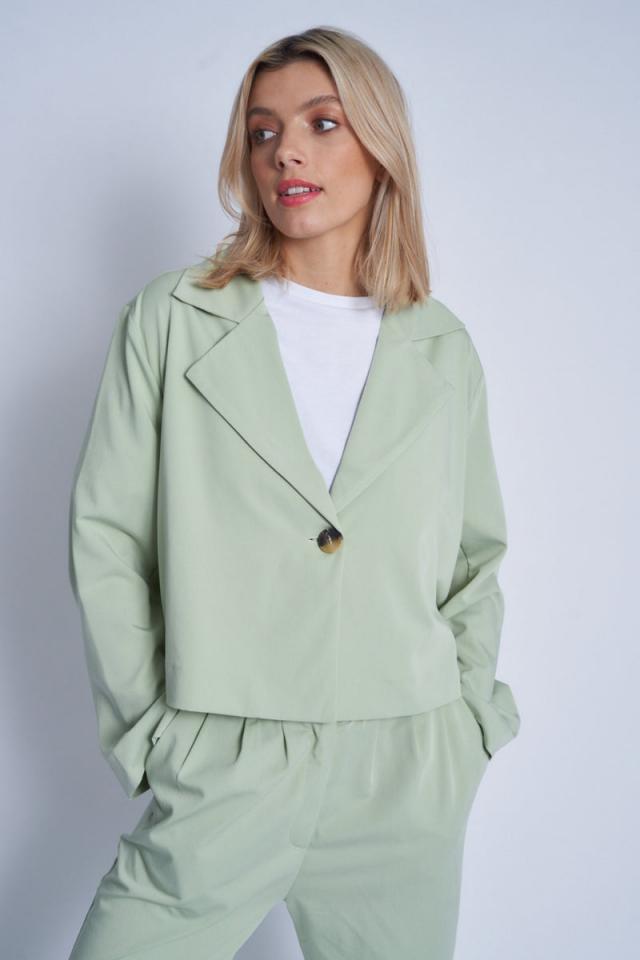 Description Delivery & Returns Introducing the Neroli Blazer. A new redesigned statement blazer with a cropped, boxy fit and one-button enclosure. Coming in the signature SS21 colourway, sage green. Pair it with the Neroli Jogger to complete the co-ord. Model is 5’5, size 8 and wearing a size XS REGULAR FIT NWJK73C | 79% POLY 18% ELASTANE VISCOSE 3%